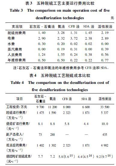 2.2燒結煙氣脫硫運行成本